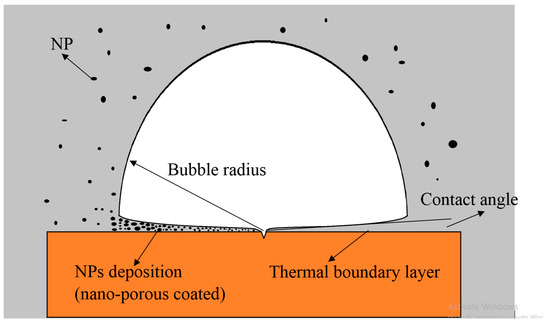 From these equations, a parameter changed by nanoparticles is nucleation site density, which is calculated by Equation (22) [59], and other parameters will be explained in the following section.