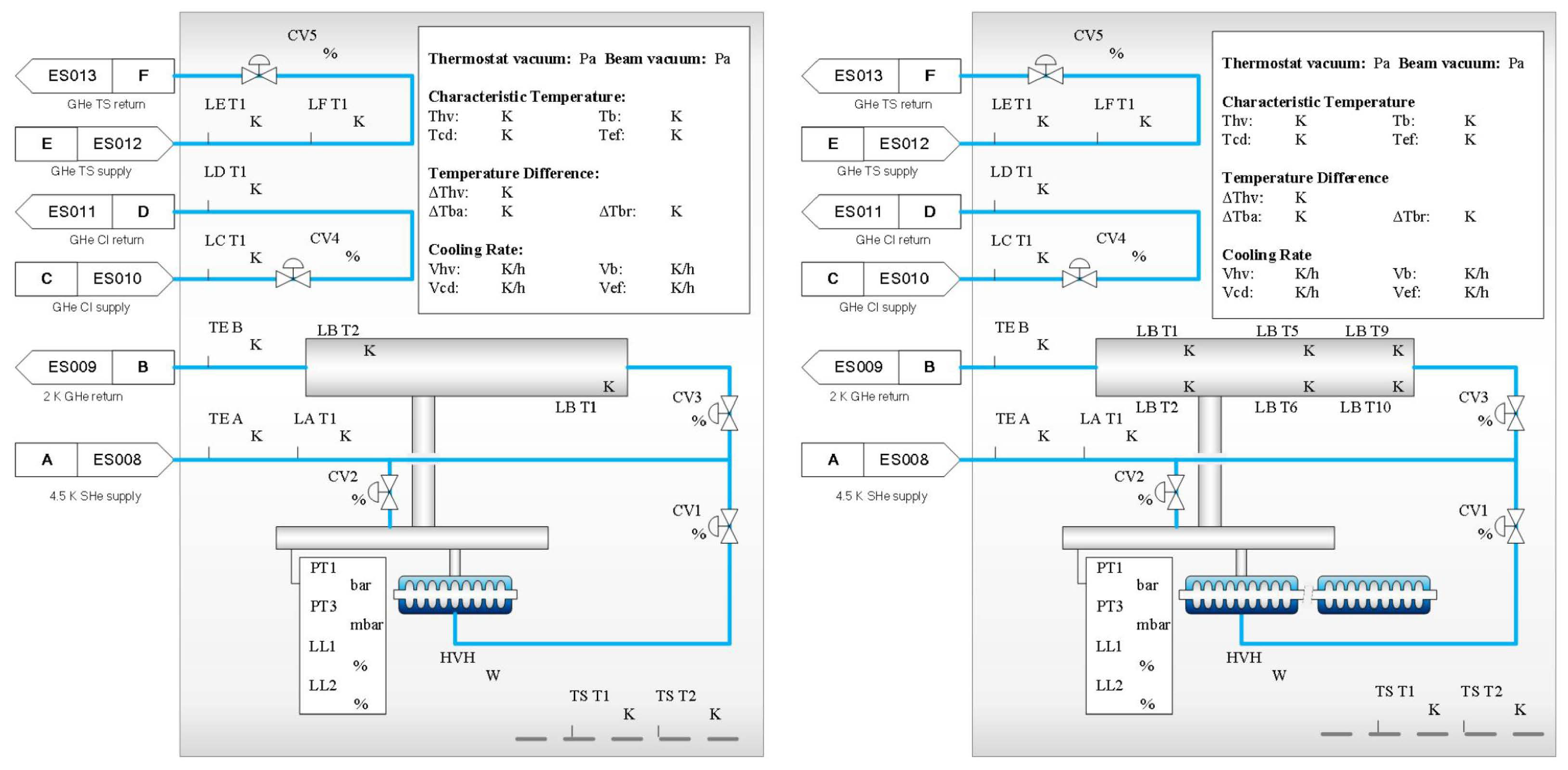 - Stage 1 (300 K–160 K): Conventional cooling using a mixture of 300 K and 35 K helium. Safety thresholds include a radial temperature difference K in Tank B and an axial temperature difference K in Tube B, with a vacuum level ≤ 1 × 10 Pa and a thermal vacuum interlock at 10 Pa;