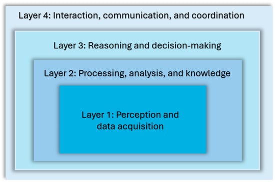 - Albus, J.; Huang, H.-M.; Messina, E.; Murphy, K.; Juberts, M.; Lacaze, A.; Balakirsky, S.; Shneier, M.; Hong, T.; Scott, H.; et al. 4D/RCS Version 2.0: A Reference Model Architecture for Unmanned Vehicle Systems. In NIST Interagency/Internal Report (NISTIR); NIST: Gaithersburg, MD, USA, 2002; p. 6910. [Google Scholar] [CrossRef]