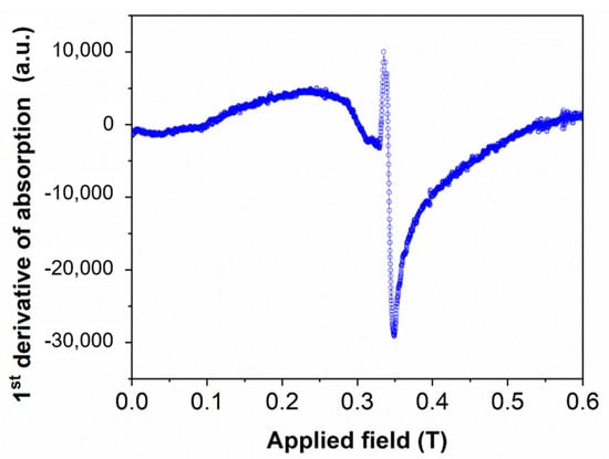 From the EPR spectra, several important parameters were determined, including the resonance line width (ΔH), the resonance field position corresponding to zero signal (H0), and the effective g-factor (g). These parameters provide insights into the magnetic environment and spin interactions in the samples [,,,,,].