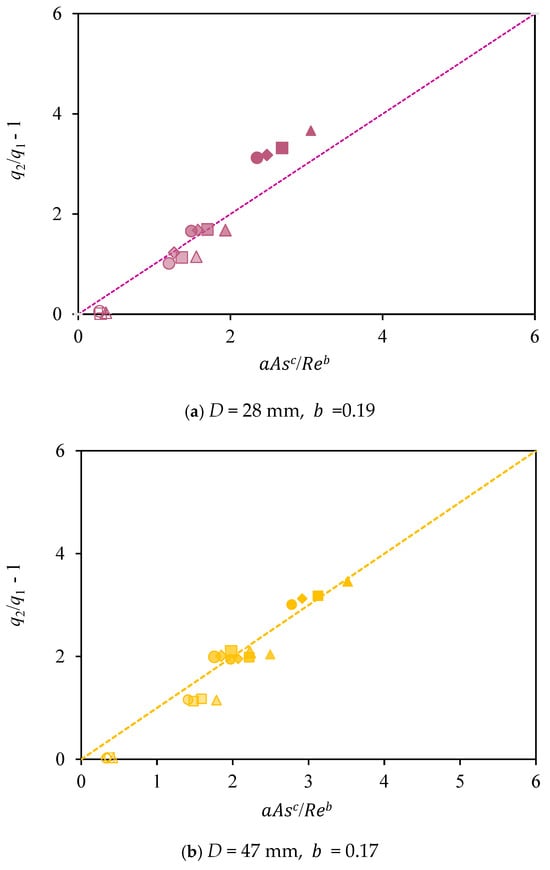 In the above equation, , and are empirical parameters obtained by fitting Equation (5) against the experimental data. It should be noted that the two variables in experiments, and , directly determine Re and As. A large combination of (4 velocities) and (5 concentrations) can generate sufficient data to capture the overall interaction.