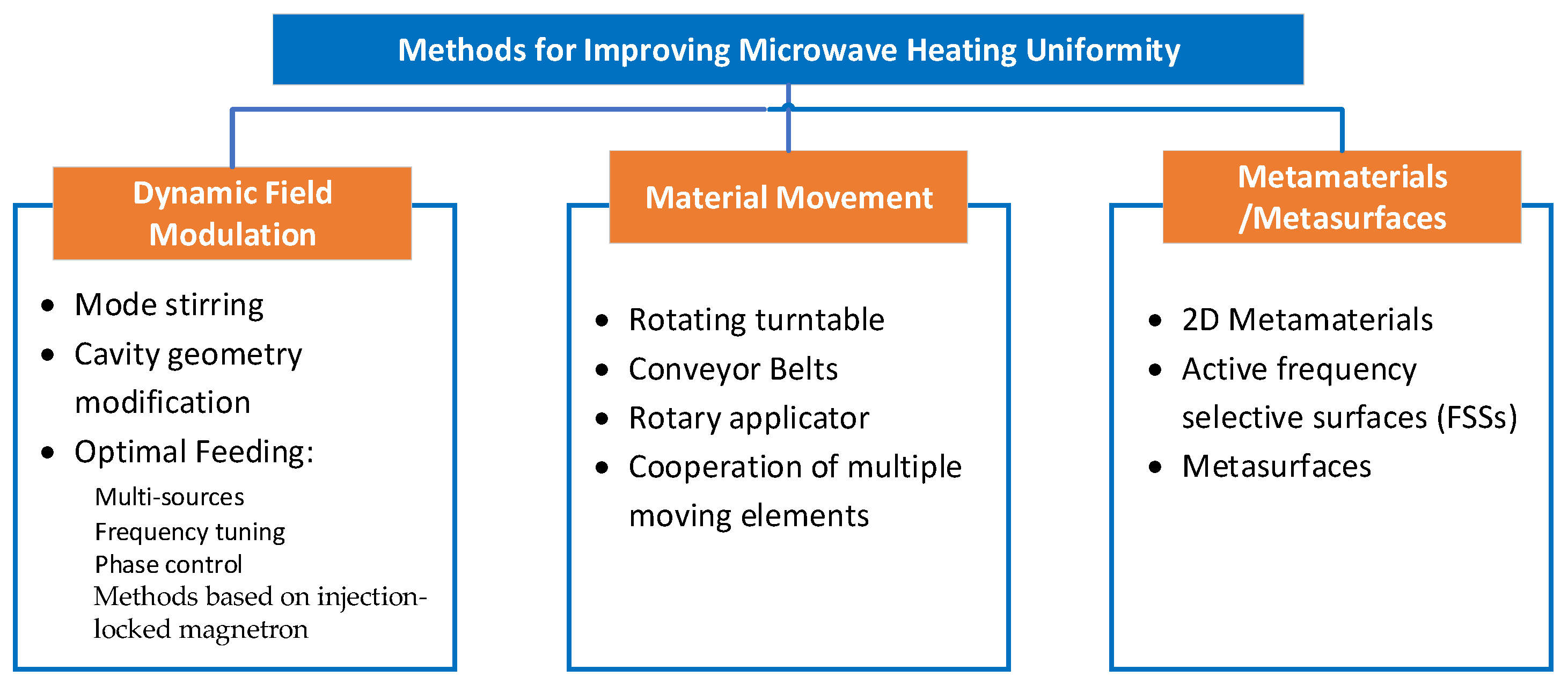 Yan L, Wang C, Yin X. A Review of Methods for Improving Microwave Heating Uniformity. Microwave. 2025; 1(3):12. https://doi.org/10.3390/microwave1030012
