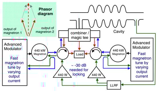 - Neubauer, M.; Popovic, M.; Johnson, R.P. Phase and Frequency locked magnetron. In Proceedings of the IPAC2012, New Orleans, LA, USA, 20–25 May 2012. [Google Scholar]