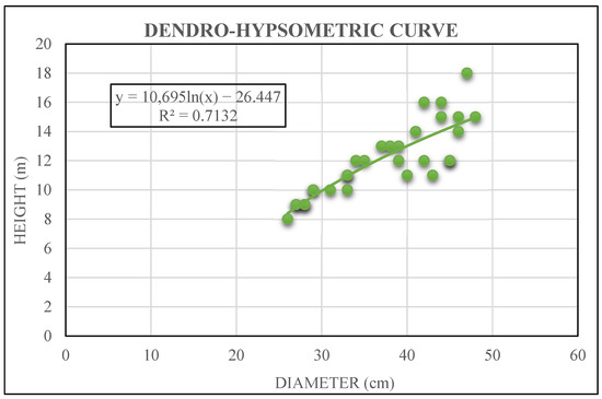 8] in their work. The formula assumes a strong correlation between diameter and height, with the dendro-hypsometric curve providing an r