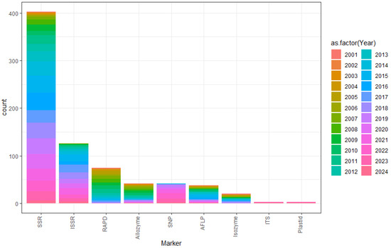 - Grover, A.; Sharma, P.C. Development and use of molecular markers: Past and present. Crit. Rev. Biotechnol. 2016, 369, 290–302. [Google Scholar] [CrossRef]