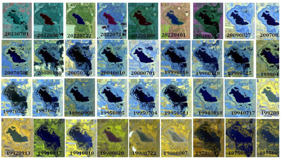 Dynamics of Beleu Lake extent (source: extracted from Landsat images, https://earthexplorer.usgs.gov/, accessed on 2 May 2024).