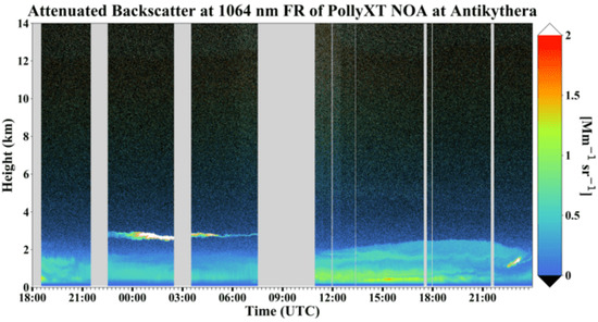 Time–height cross-sections of the attenuated backscatter coefficient at 1064nm over the PANGEA observatory in Antikythera, Greece on 22–23 July 2020.