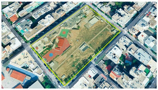 Numerous studies highlight the value of monitoring bioclimatic indicators and land use using GIS tools, thermal sensors, and satellite imagery to support decision-making in urban development projects [7,8]. This integrated approach enables both remote and on-site analysis. In this study, on-site measurements were conducted using a Kestrel 5400 Heat Stress Tracker (Kestrel Instruments, Boothwyn, PA, USA), handheld GPS device (Garmin Ltd., Olathe, KS, USA), and portable surface temperature sensors (Kestrel Instruments, Boothwyn, PA, USA). Data were collected during afternoon and late evening hours to capture real-life microclimatic conditions, particularly during times when people are most likely to use outdoor spaces. Key bioclimatic indicators measured include air temperature (°C), wet bulb temperature (°C), globe temperature (°C), relative humidity (%), dew point (°C), NA WBGT (No Air or No Activity Wet Bulb Globe Temperature, °C), and wind chill (°C). All collected data were integrated into a GIS platform and visualized using Google Earth. These findings informed the bioclimatic design strategy of the proposed pocket park.