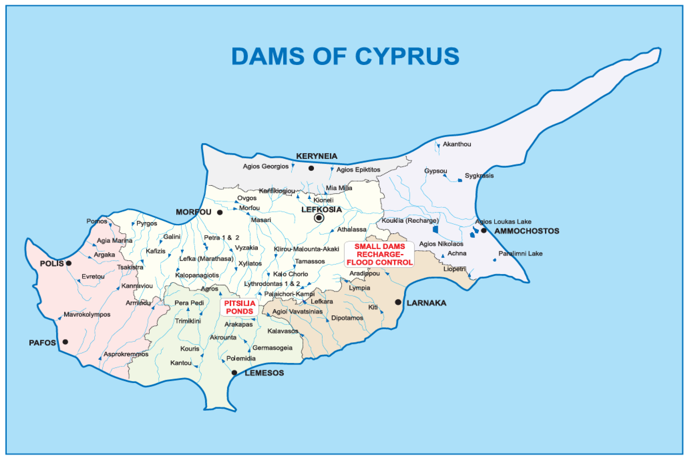 Cyprus is situated in the Eastern Mediterranean, with annual precipitation occur-ring predominantly between October–April and totals ranging from about 300 mm in the plains to over 1000 mm in the Troodos Mountains [