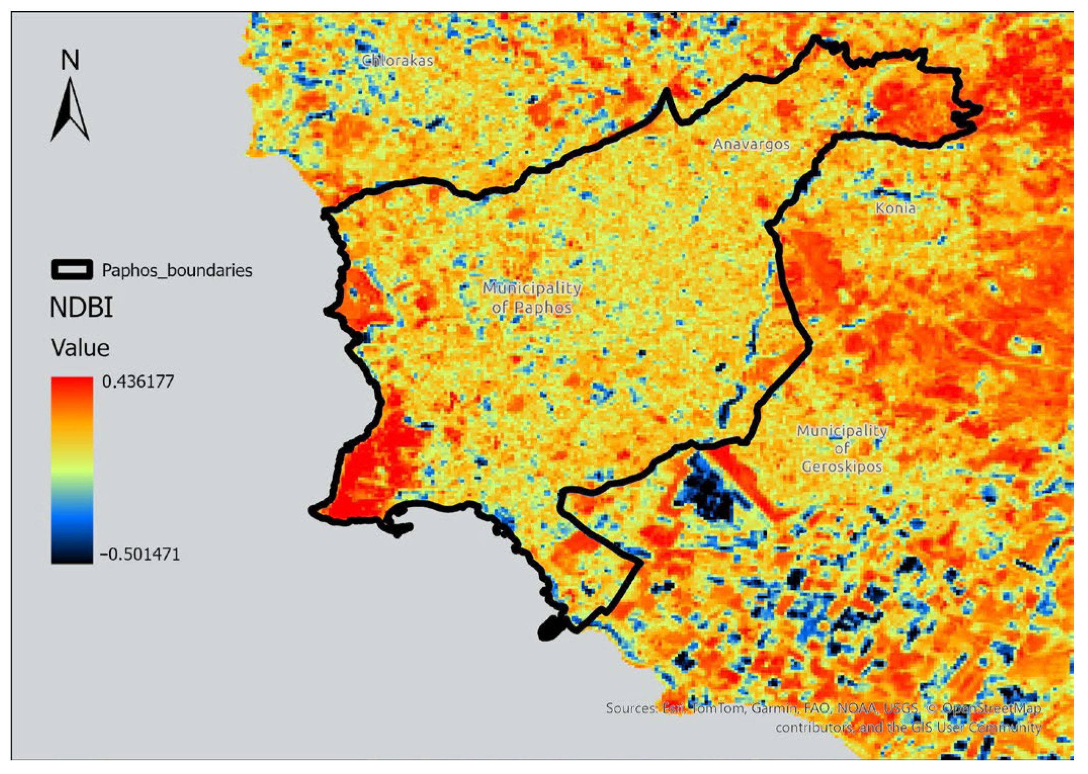 Assessing the Urban Heat Island (UHI) Effect Using Land Surface Temperature (LST) and Normalized Difference Built-Up Index (NDBI): A Case Study on Paphos, Cyprus †