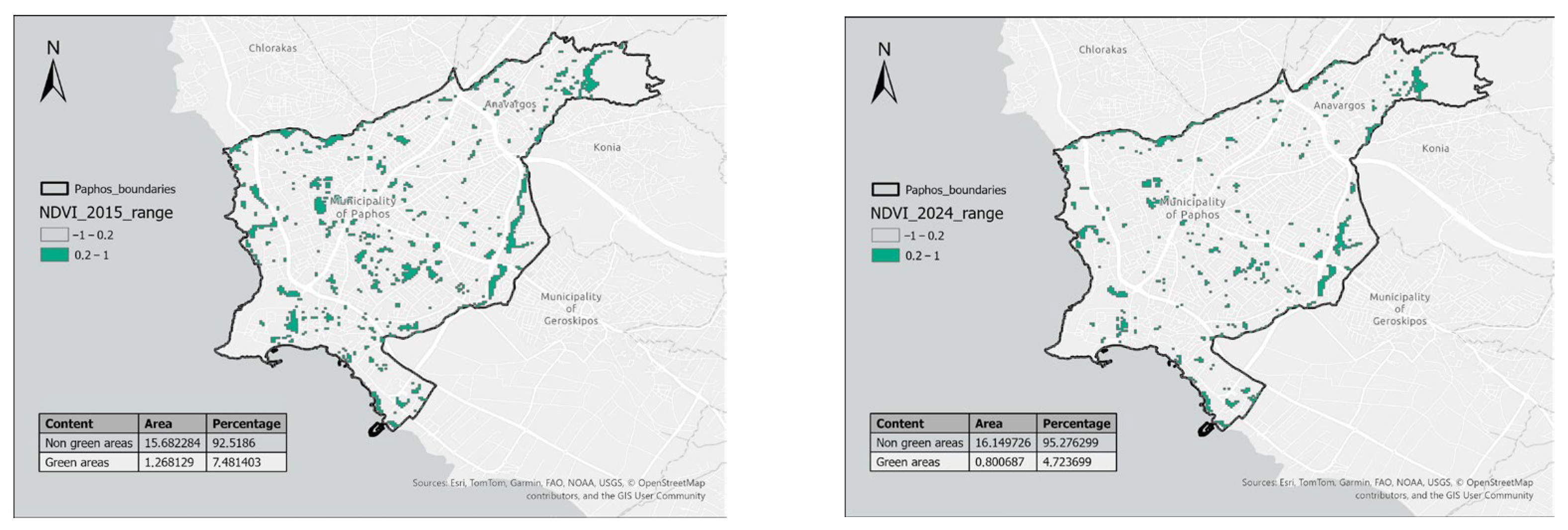 - Nusret, D.; Samir, D.; Muniba, O. NDVI and NDBI Indexes as Indicators of the Creation of Urban Heat Islands in the Sarajevo Basin. Geogr. Pannonica 2024, 28, 34–43. [Google Scholar] [CrossRef]