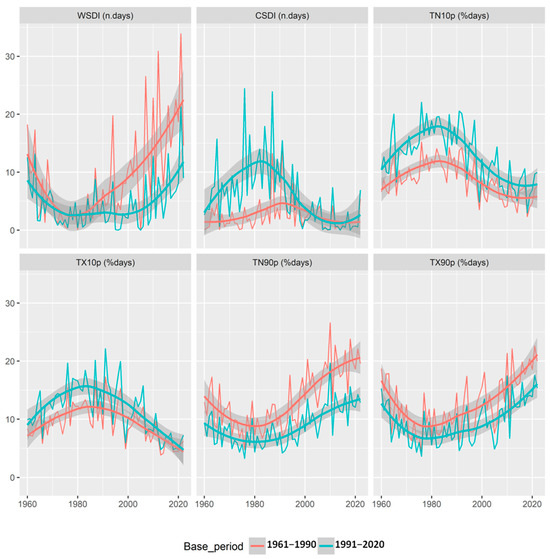 | Cold Spell (CSDI) | day | Annual count of days with at least 6 consecutive days when daily min temperature < 10th percentile centered on a 5-day window |