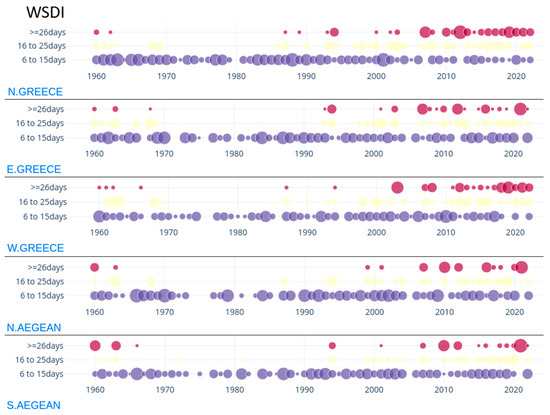 | Warm Spell (WSDI) | day | Annual count of days with at least 6 consecutive days when daily max temperature > 90th percentile centered on a 5-day window |