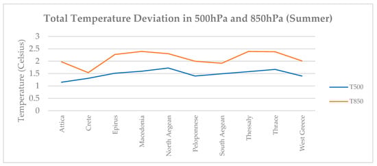 Total temperature deviation at 500 hPa and 850 hPa (Summer).