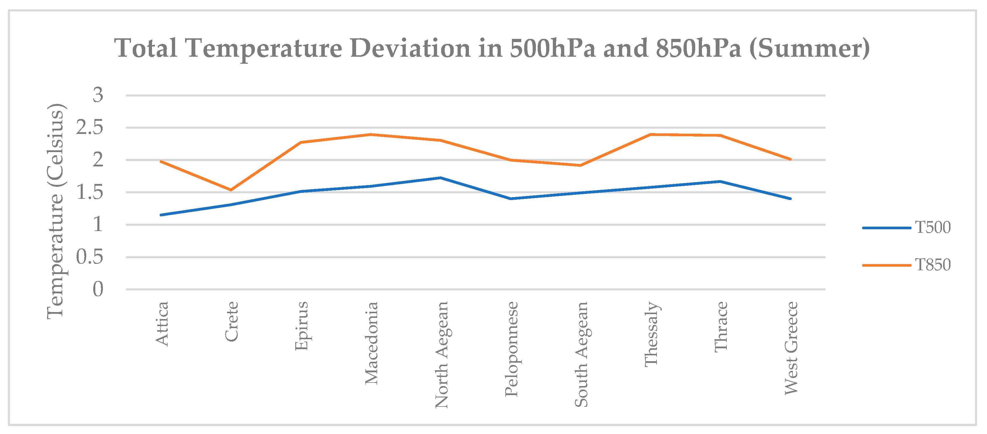 3.2.2. Total Temperature Deviation at 500 hPa and 850 hPa