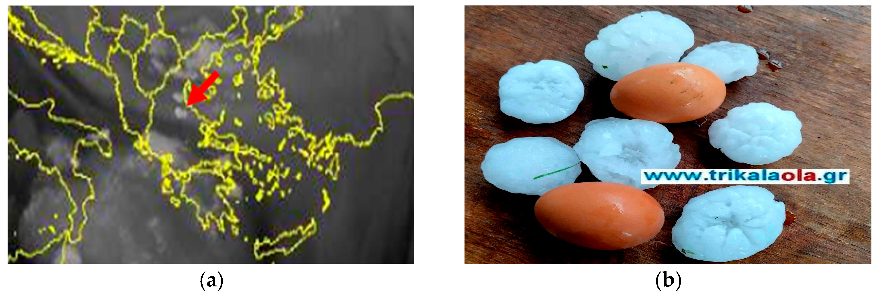 5. Christodoulou, M.; Pytharoulis, I.; Karacostas, T. The July 10, 2019 Catastrophic Supercell over Northern Greece Part 1: Observational Analysis. In Proceedings of the 15th Panhellenic Conference of Meteorology, Climatology and Atmospheric Physics, Ioannina, Greece, 26–29 September 2021. [Google Scholar]