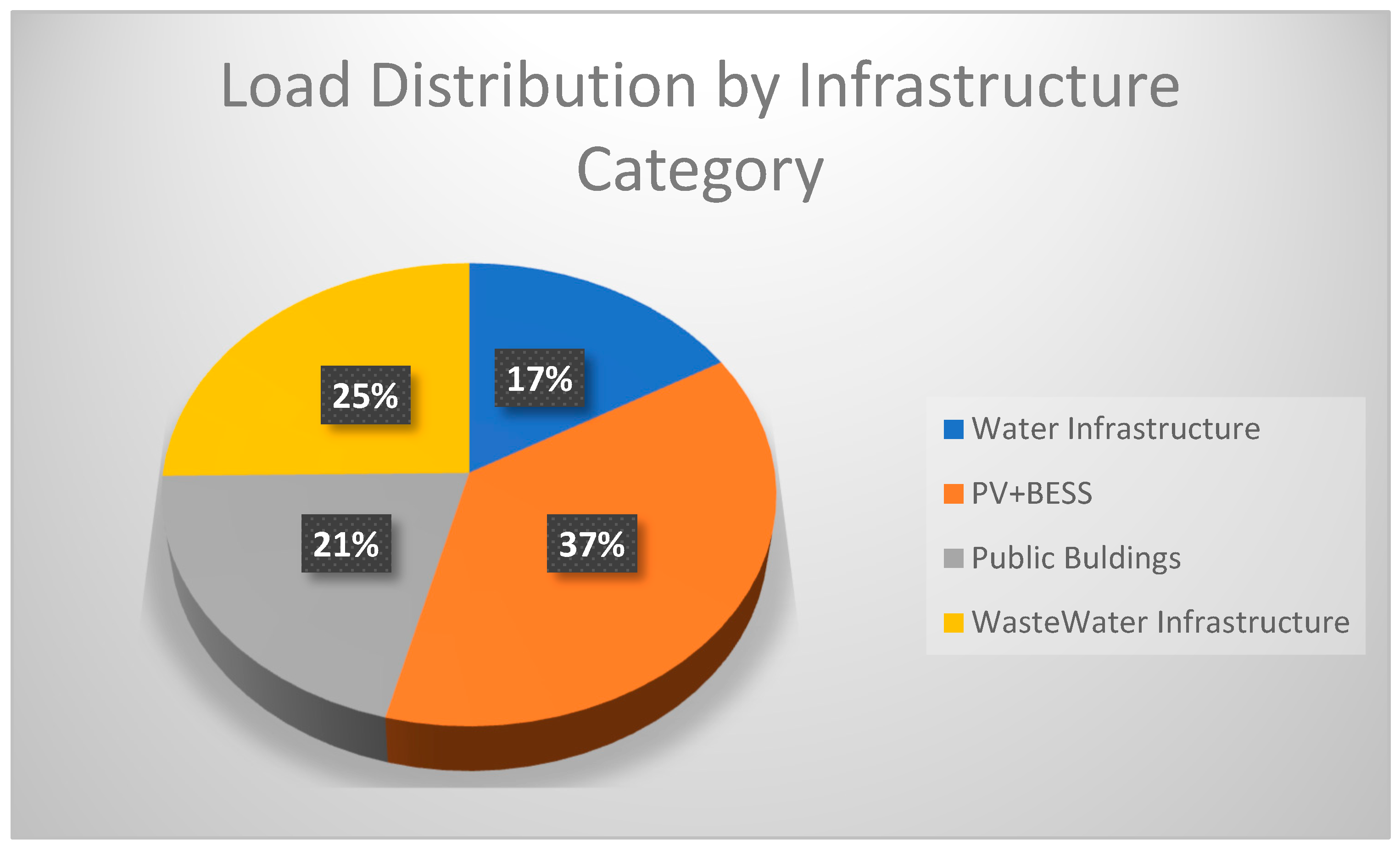 • Water and Wastewater Infrastructure: Including 50 pumping stations and 25 local stations with dataloggers, plus one wastewater treatment plant (WWTP), accounting for a combined load of ~2 MW.