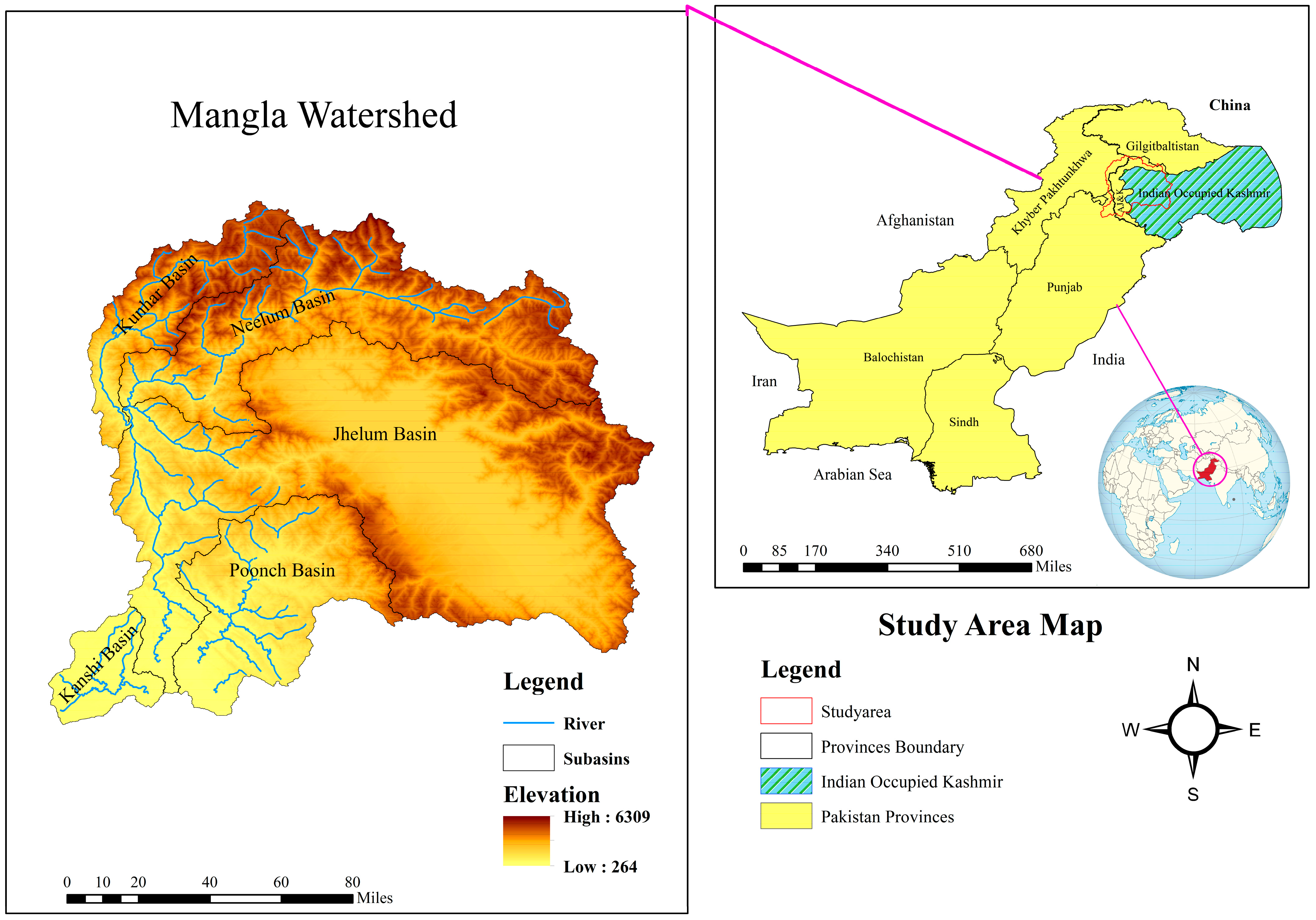 - Haider, H.; Zaman, M.; Liu, S.; Saifullah, M.; Usman, M.; Chauhdary, J.N.; Anjum, M.N.; Waseem, M. Appraisal of Climate Change and Its Impact on Water Resources of Pakistan: A Case Study of Mangla Watershed. Atmosphere 2020, 11, 1071. [Google Scholar] [CrossRef]