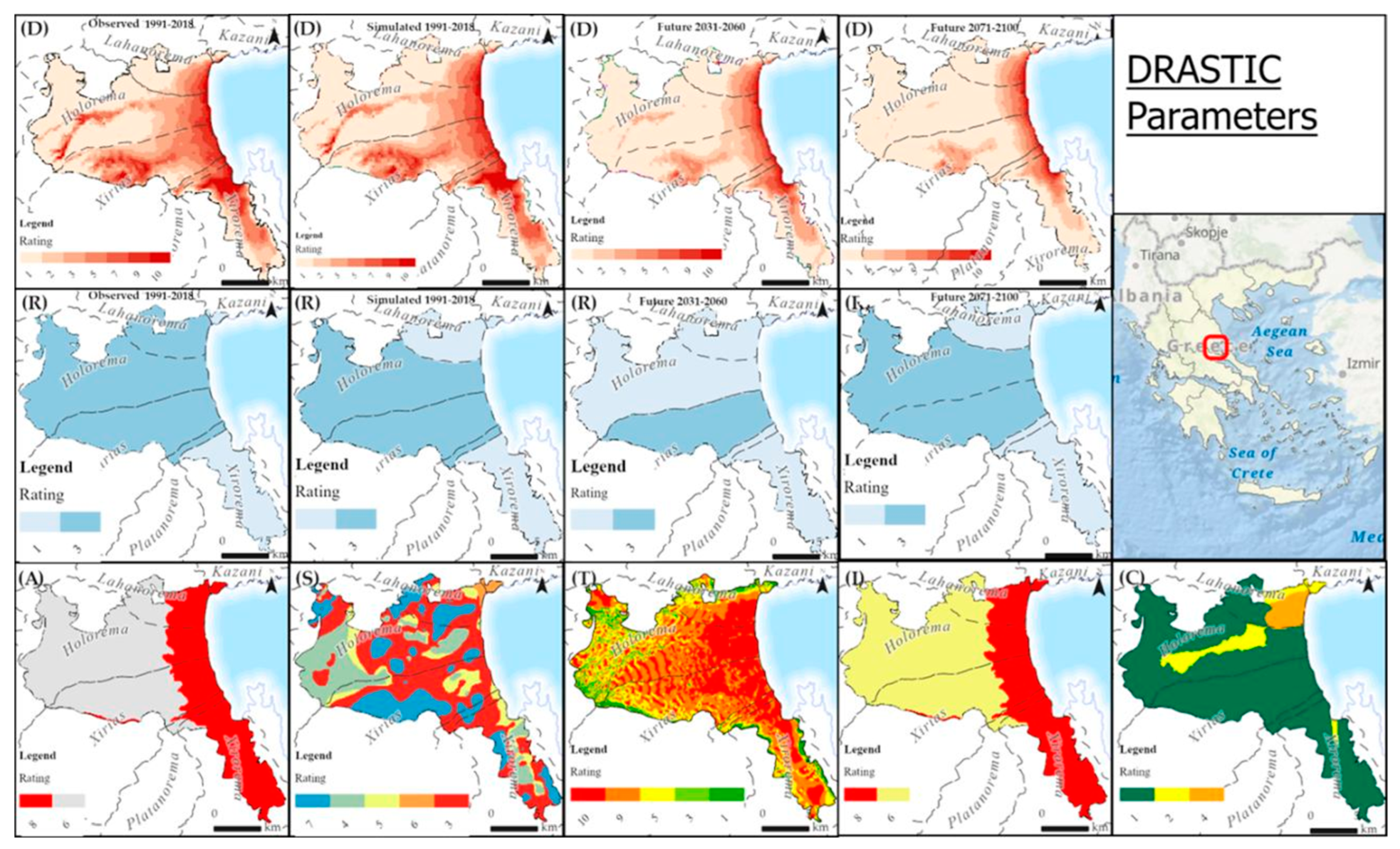 The main methods used in this study are the DRASTIC method, under bias-corrected Med-CORDEX climatic data for RCP 8.5 using the GUF-CCLM4-8-18.v1 climate model data.