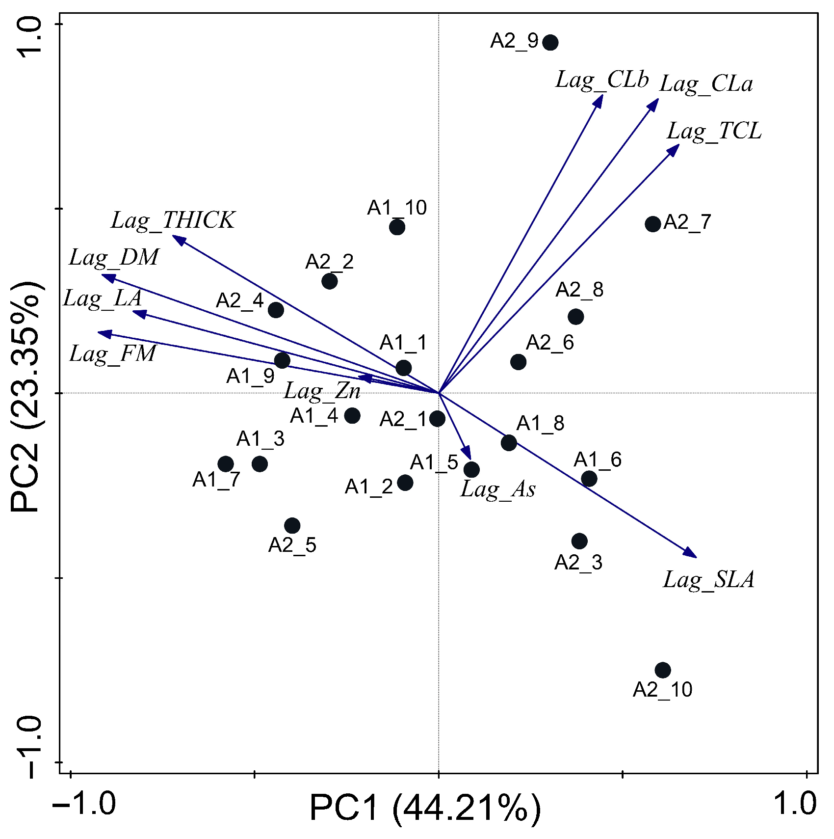 | Specific Leaf Area (cm2/g) | 45.80 (±3.78) | 44.98 (±3.33) | 1.65 | 0.10 ns |