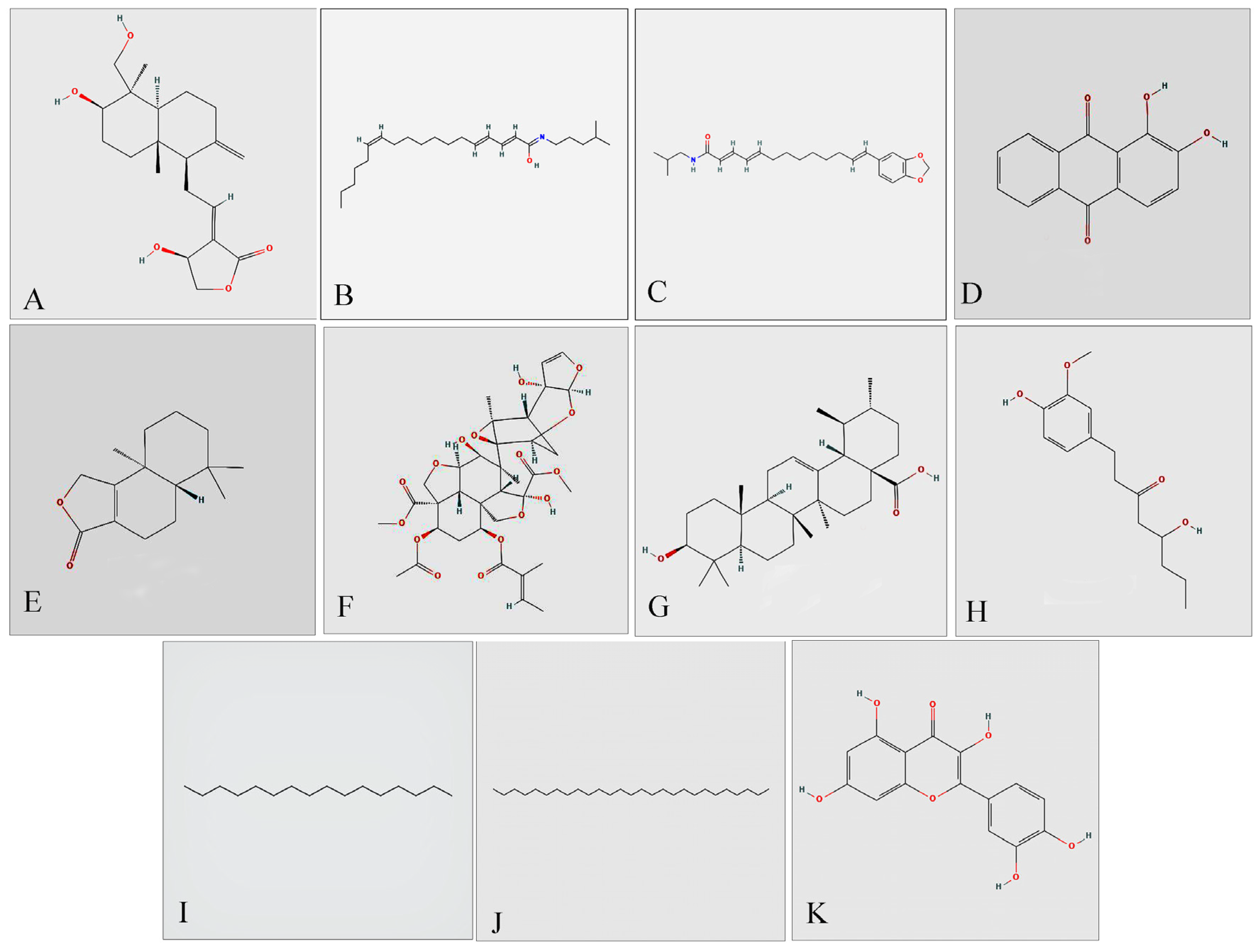 - Reegan, A.D.; Stalin, A.; Paulraj, M.G.; Balakrishna, K.; Ignacimuthu, S.; Al-Dhabi, N.A. In Silico Molecular Docking of Niloticin with Acetylcholinesterase 1 (AChE1) of Aedes aegypti L. (Diptera: Culicidae): A Promising Molecular Target. Med. Chem. Res. 2016, 25, 1411–1419. [Google Scholar] [CrossRef]