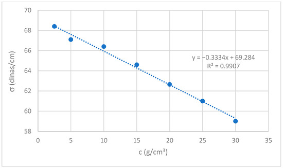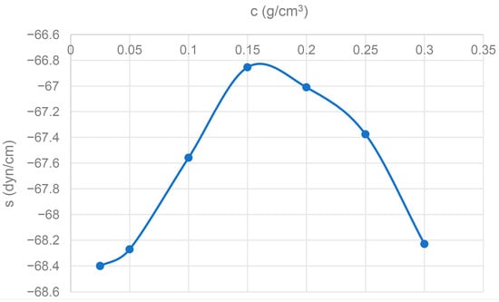 The surface tension of the solutions was measured with a Du Noüy tensiometer (Brookfield, Middleboro, MA, USA) thermostated at 25 °C.