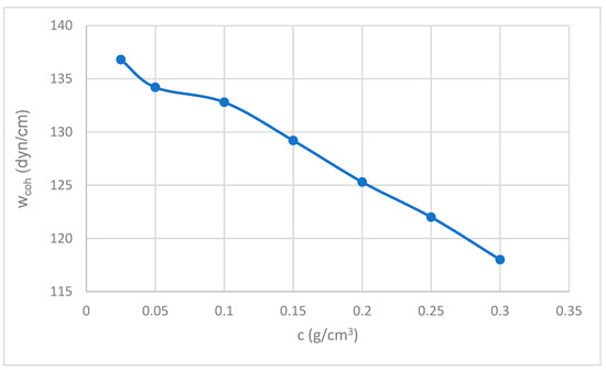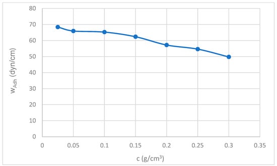 Our previous analyses showed that, despite the reduction in surface tension, the contact angle of the CBG solution on A4 paper increases (from 88° for water to 99° for 30% CBG), and the work of adhesion decreases. This indicates poor wetting and a low interfacial affinity between the adhesive and the substrate, which is critical for good adhesion (Adamson & Gast (1997) [
