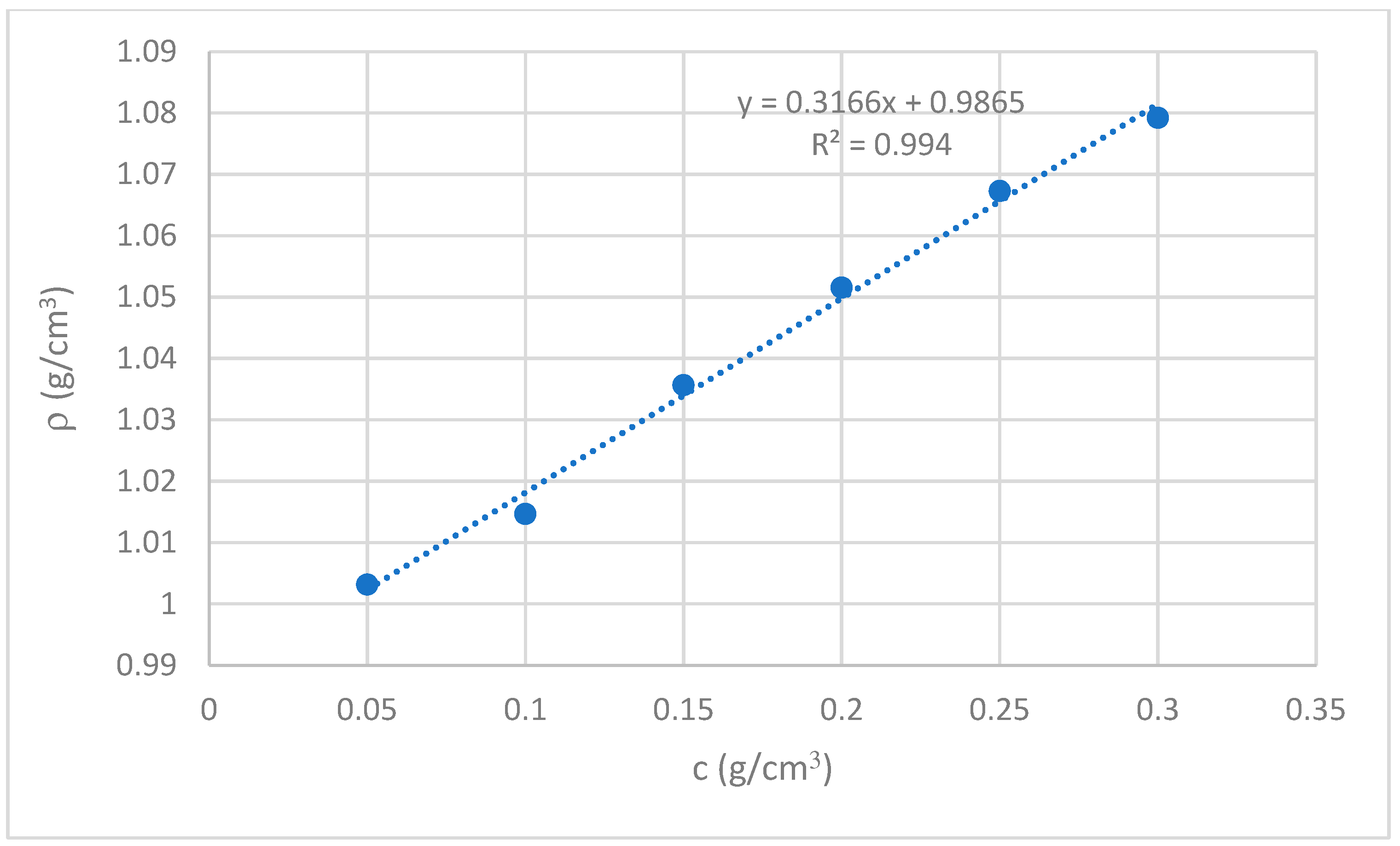 The density of the solutions was measured with a 25 cm3 pycnometer (Everglass, Valparaiso, Chile) thermostated at 25 °C.