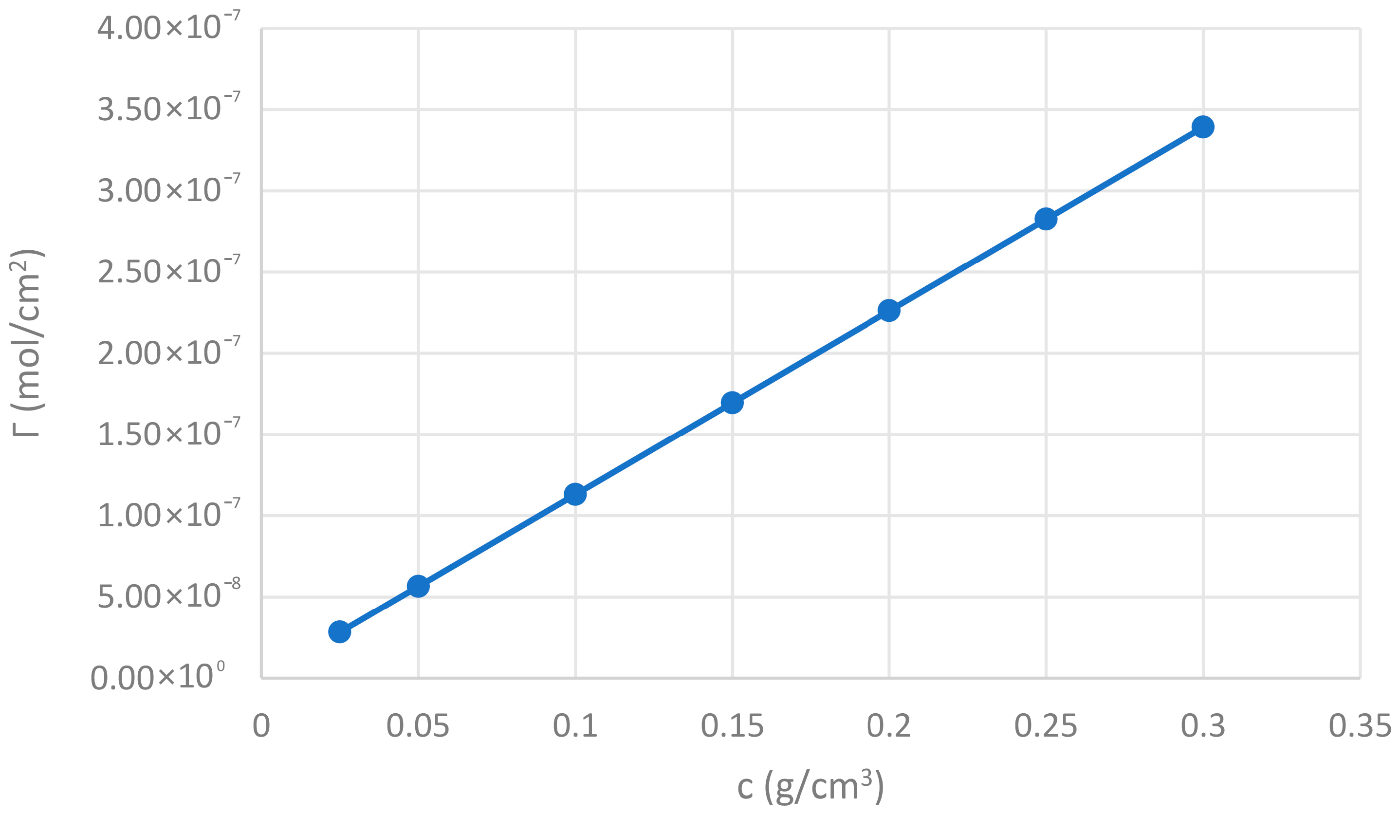 The Γ2(1) values increase in direct proportion to the gum concentration in the solution. The excess surface concentration measures the amount of solute (CBG) that accumulates at the liquid-air interface compared to the bulk of the solution (see Figure 4). The increase in Γ2(1) with gum concentration confirms that CBG adsorbs at the interface. This adsorption is responsible for the observed reduction in surface tension (Hiemenz & Rajagopalan (1997) [52]).