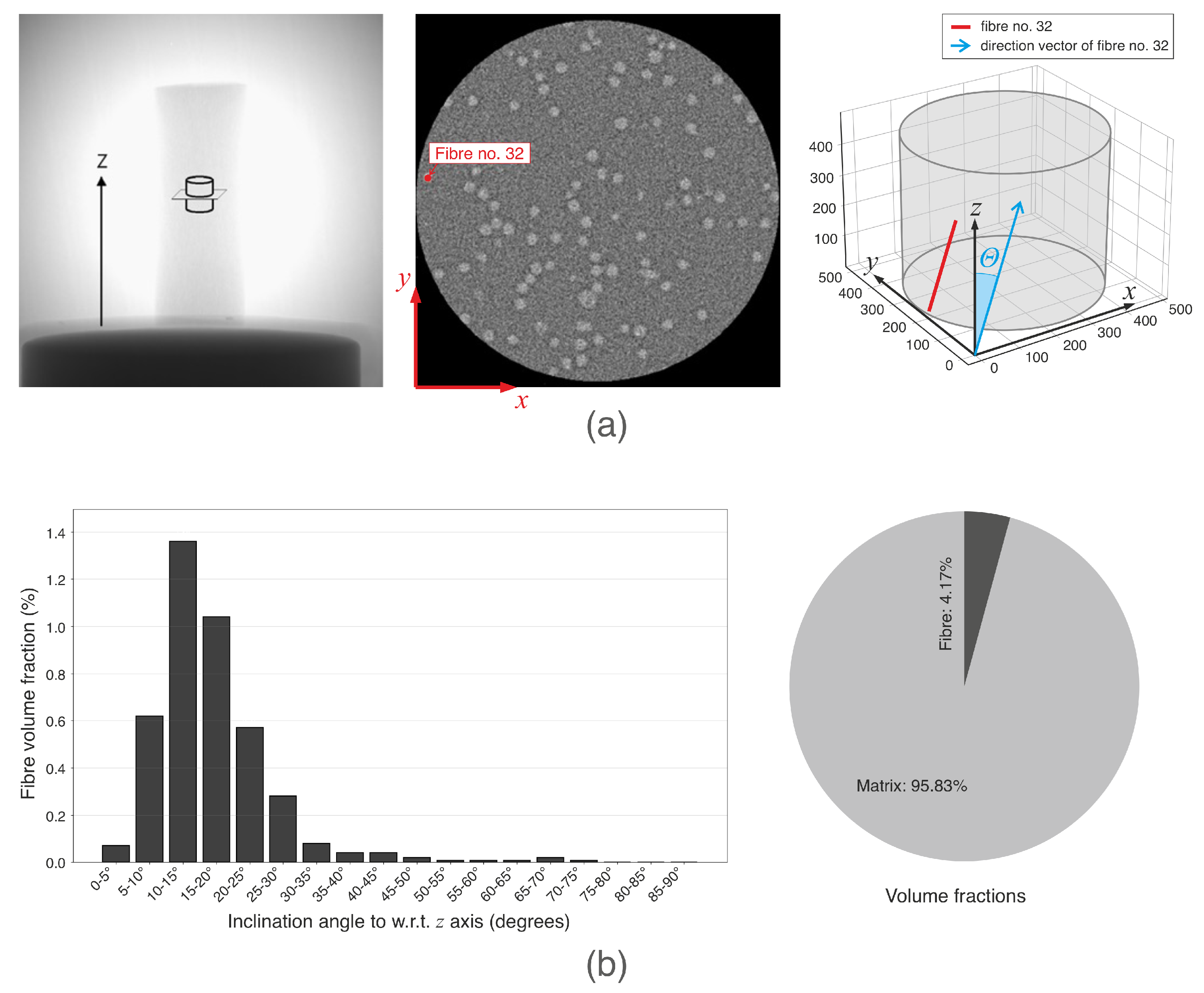 - High-resolution µCT imaging combined with automated denoising, segmentation, and convexity-based fibre separation enabled accurate quantification of fibre volume fraction, orientation, and clustering.