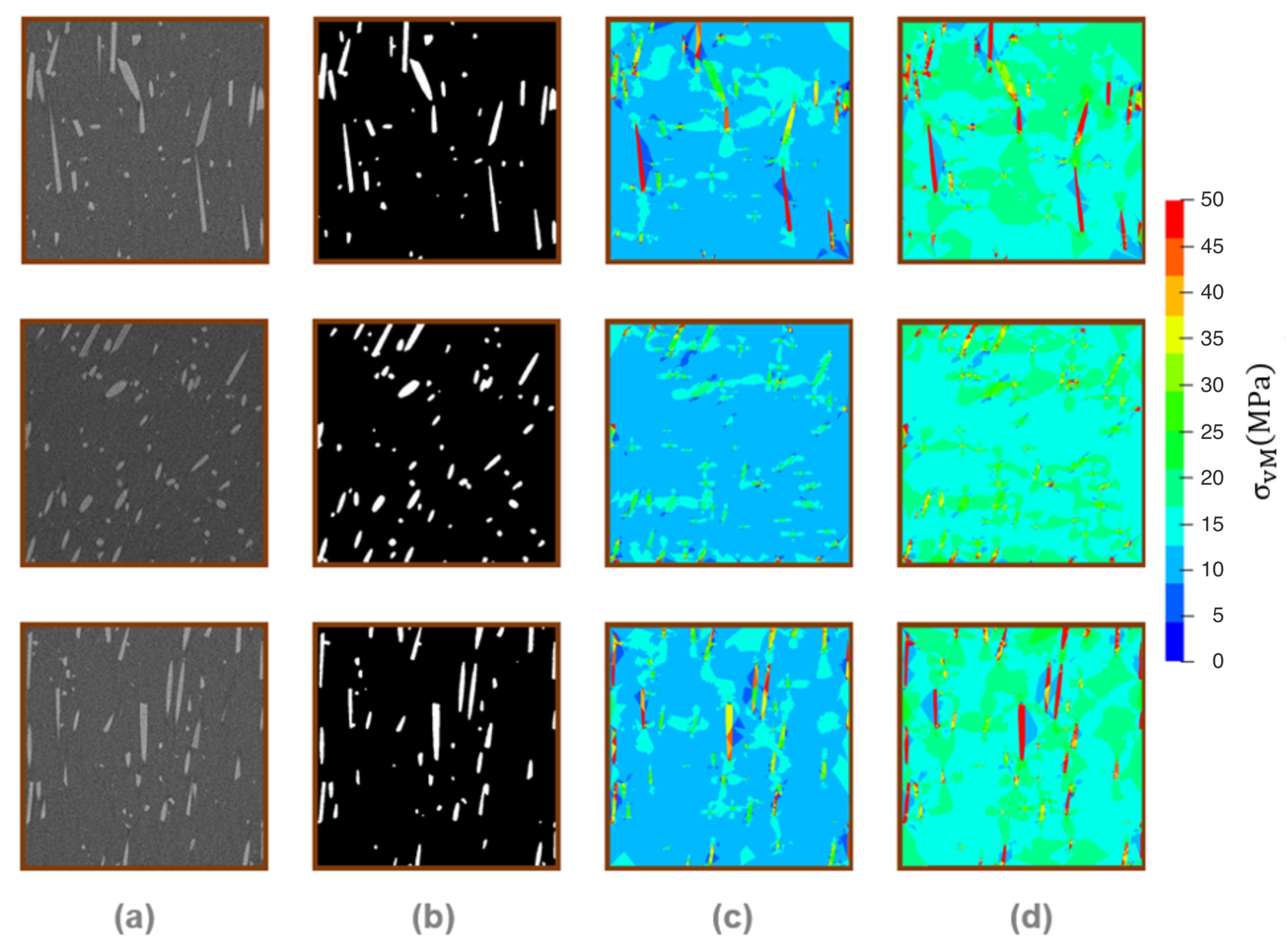 - Two-dimensional slice-based FEM provided computationally efficient insights into fibre orientation effects, capturing interfacial stress amplification and the influence of clustering on matrix hotspot formation.