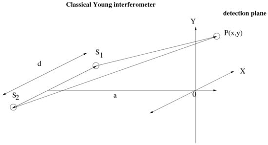 with as the wave number with (), n is the refraction index, (), is the used wavelength and is the maximum value of intensity in the Young pattern. Equation (2) arises after considering two point sources and without diffraction effects.