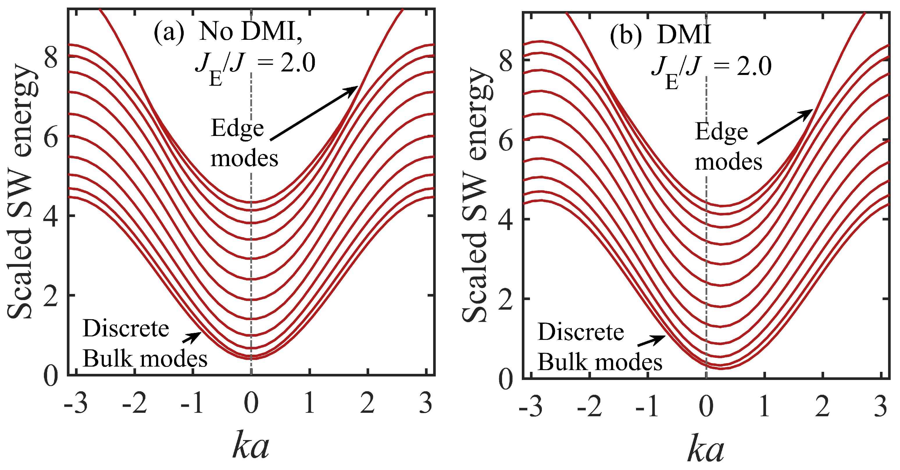 - Hussain, B.; Cottam, M.G. Spin waves in ferromagnetic nanorings with interfacial Dzyaloshinskii-Moriya interactions: II. Directional effects. Nanomaterials 2024, 14, 286. [Google Scholar] [CrossRef]