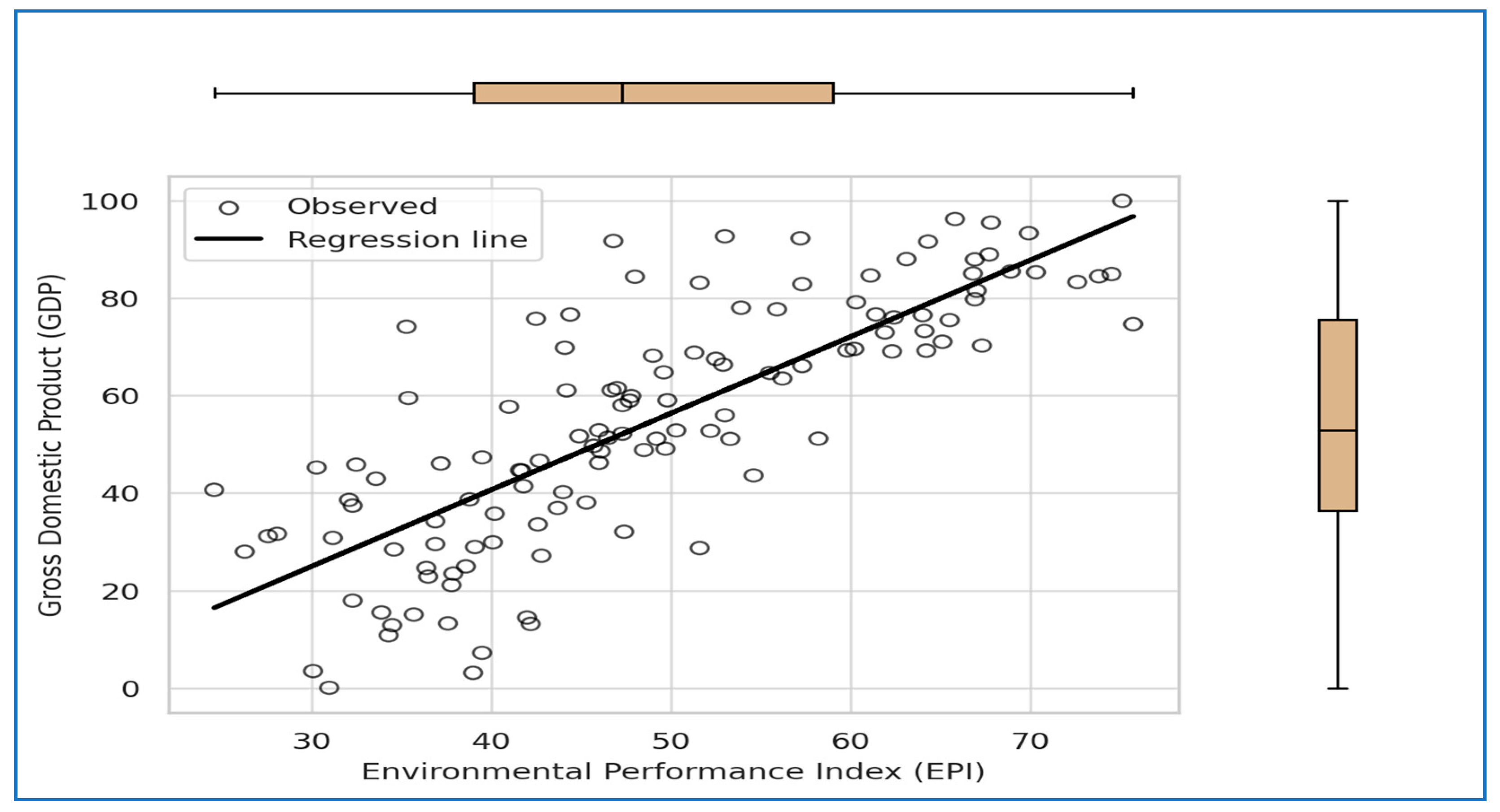 Recent research suggests that governance does not merely act as an independent driver of development, but often functions as a moderating or mediating factor between environmental outcomes and economic expansion. Wendling et al. [33] confirm that governance quality (WGI) is one of the strongest predictors of environmental performance index (EPI), even beyond the effects of income levels. Similarly, Mavragani et al. [34] demonstrate that economies with high institutional quality and openness achieve better environmental results (EPI), pointing to governance as a foundational enabler of sustainability. This interdependence is further emphasized by Teixeira et al. [35], who show that the relationship between economic growth and environmental sustainability differs significantly across countries, with stronger institutions and sustainable policy frameworks mitigating the environmental costs of growth. Their findings highlight that balanced governance and long-term sustainability strategies can transform the growth–environment trade-off into a mutually reinforcing relationship.