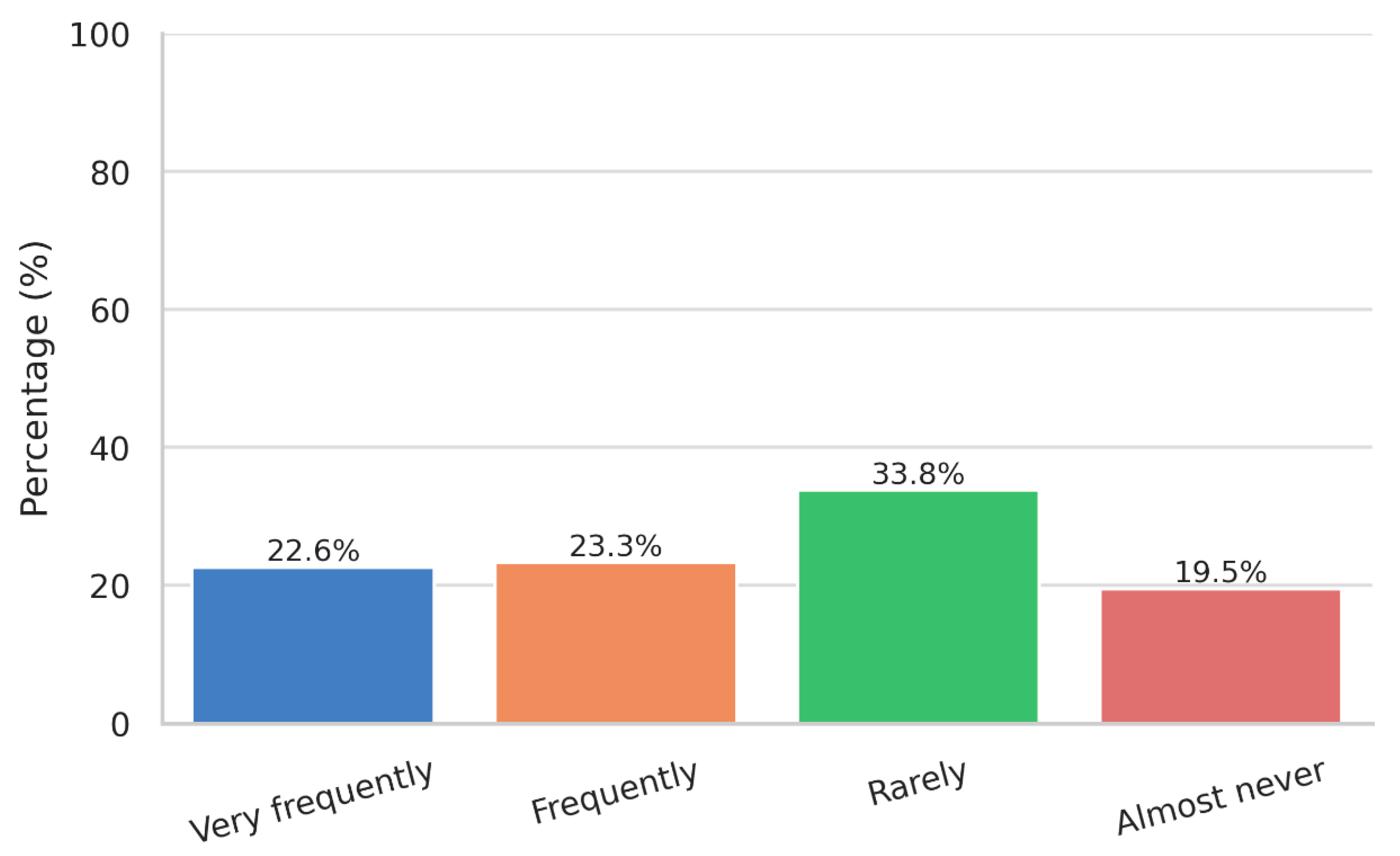 Perceptions of ESG-washing (categorised as “systematic,” “occasional,” “rare,” or “non-existent”).