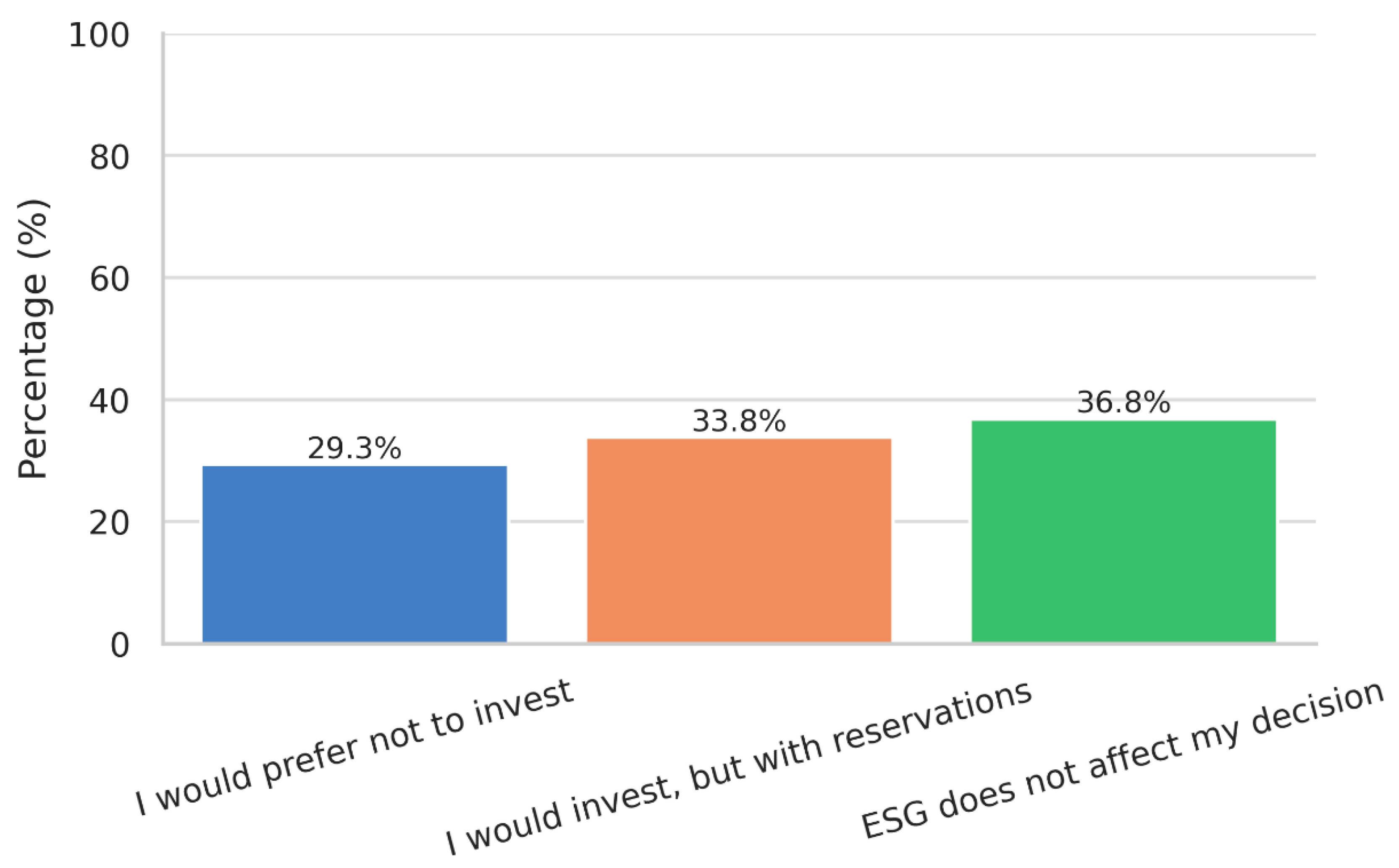 Figure 4). While 36.8% of respondents stated that ESG criteria do not influence their decision-making, 33.8% indicated they would invest in non-compliant firms