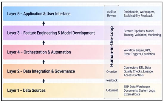 The introduction of artificial intelligence (AI), machine learning, and data analytics is changing the auditing profession [1]. Traditionally, audits were based on representative sampling, expert judgment, and control testing based on rules to make audit opinions [2,3]. However, the emergence of digital transactional data and sophisticated AI algorithms has led to a shift toward population-level analysis, anomaly detection, continuous monitoring, and predictive risk analysis [4,5]. AI-enabled platforms are now applied in different stages of the audit process, such as identifying high-risk accounts in the planning phase, generating automated internal control audit tests, anomaly detection in journal entries, analyzing unstructured text, and building real-time dashboards for control deviations [6,7]. The “big four” accounting firms and even smaller and mid-tier firms are making significant investments in AI, either by purchasing AI startups, building in-house teams, or licensing specialized audit platforms [8,9].