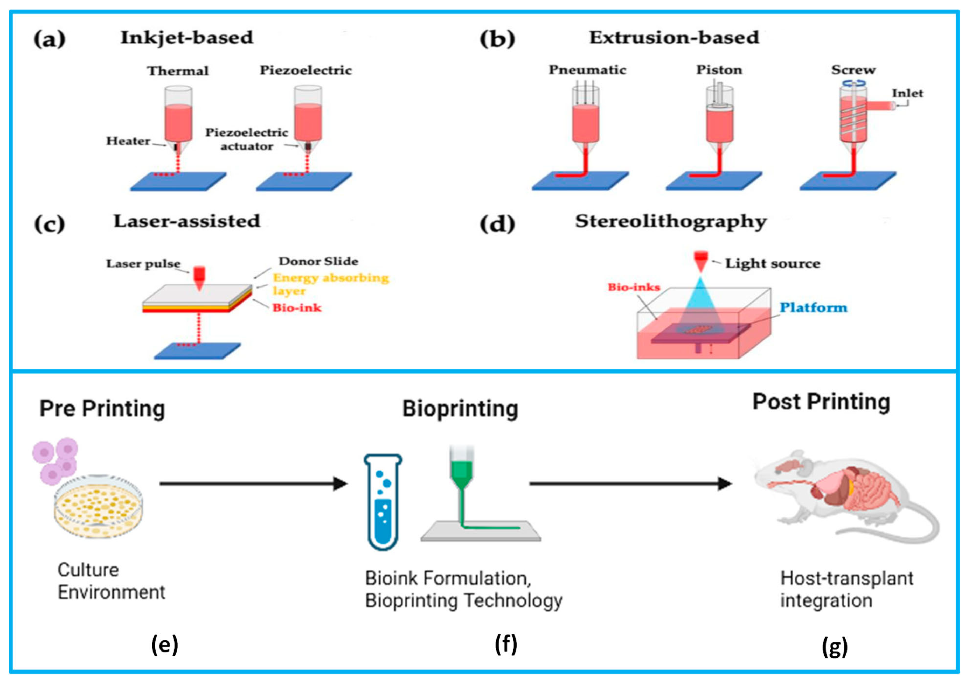 | Common AM techniques | FDM, SLS | SLA, DLP | Material Jetting, modified FDM | [101,102,103] |