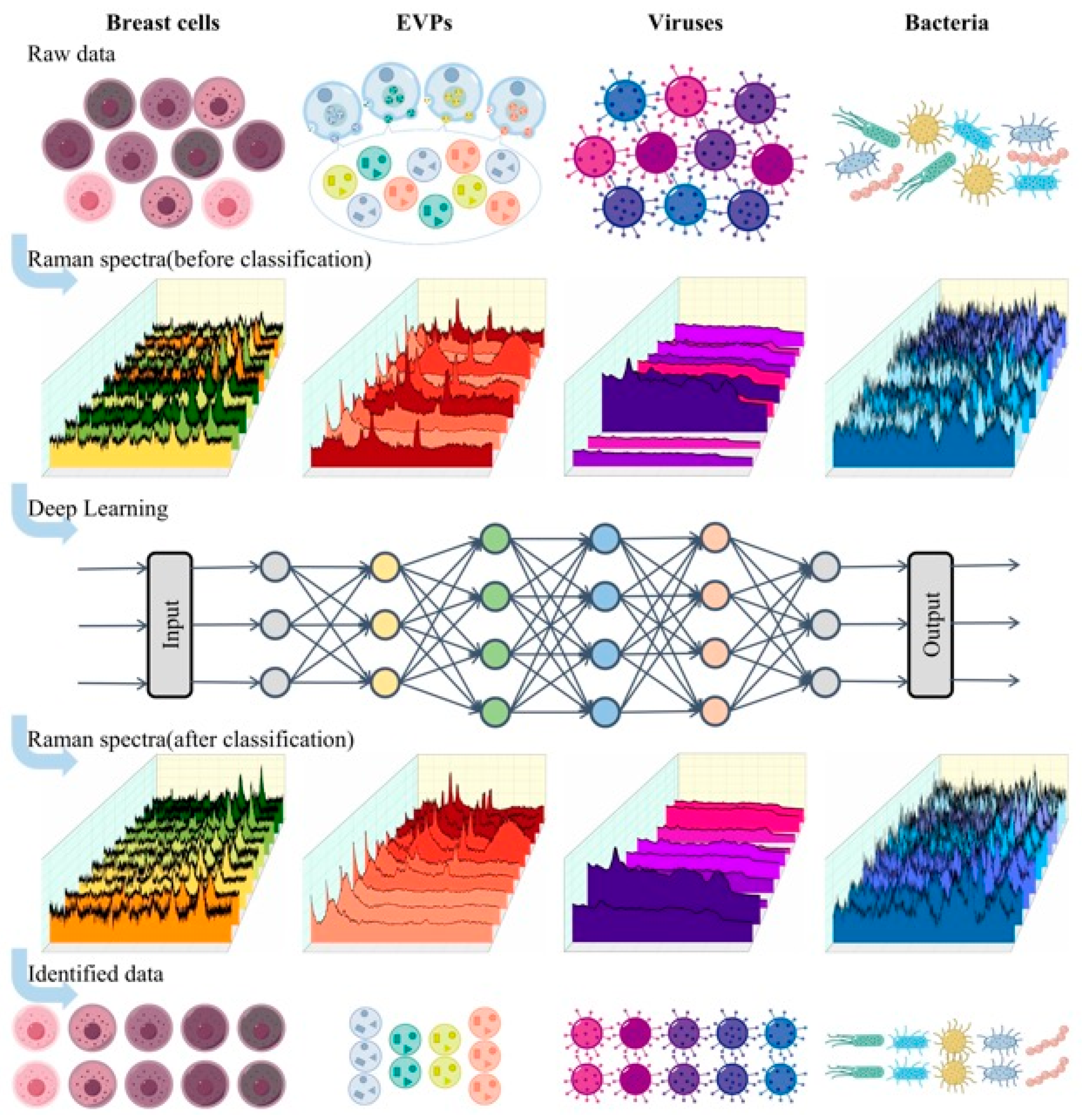- Ye, J.; Yeh, Y.-T.; Xue, Y.; Wang, Z.; Zhang, N.; Liu, H.; Zhang, K.; Ricker, R.; Yu, Z.; Roder, A.; et al. Accurate virus identification with interpretable Raman signatures by machine learning. Proc. Natl. Acad. Sci. USA 2022, 119, e2118836119. [Google Scholar] [CrossRef]