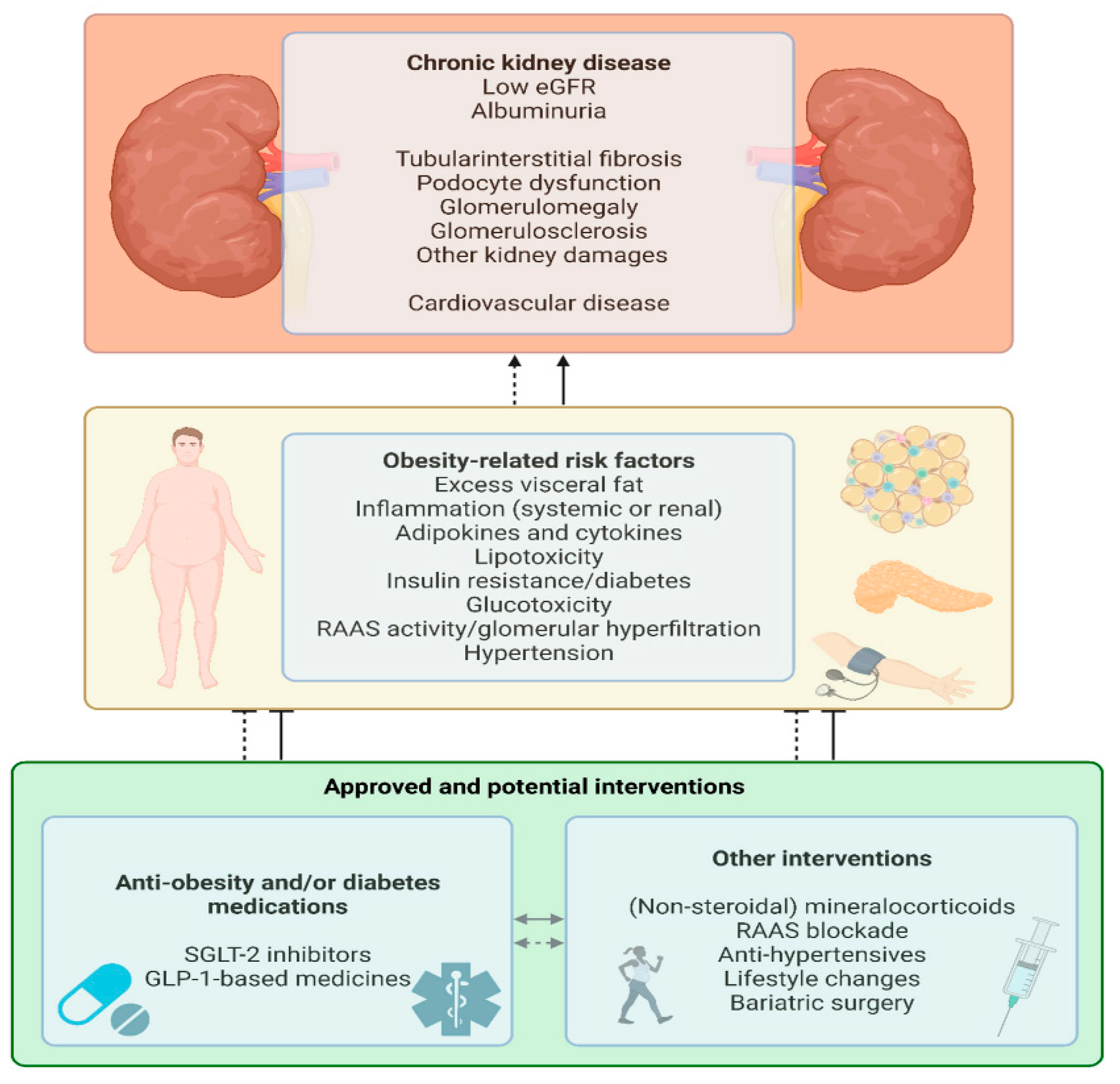 - Kreiner, F.F.; Schytz, P.A.; Heerspink, H.J.L.; von Scholten, B.J.; Idorn, T. Obesity-Related Kidney Disease: Current Understanding and Future Perspectives. Biomedicines 2023, 11, 2498. [Google Scholar] [CrossRef]