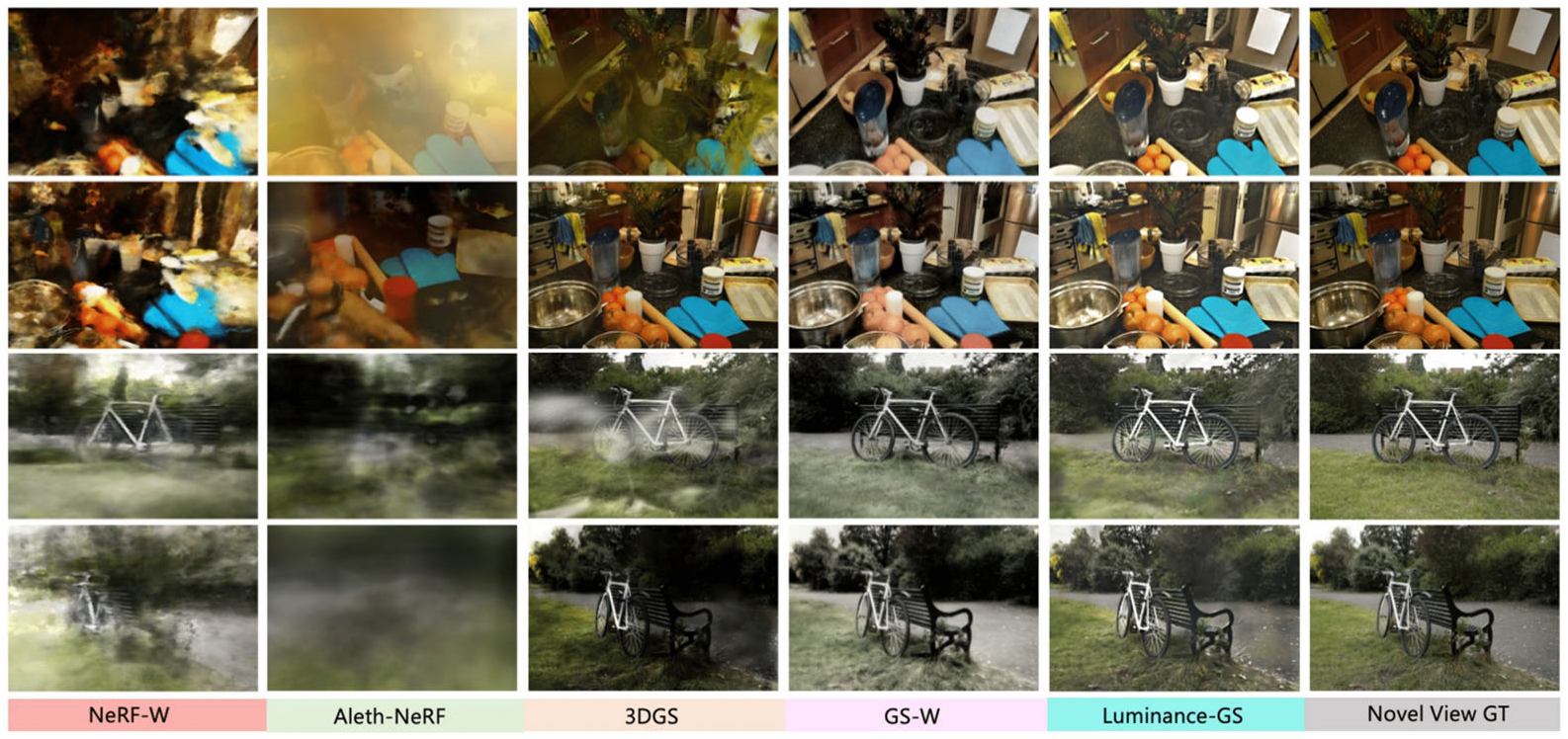 While the original formulation of 3D Gaussian Splatting assumes fixed illumination, recent extensions have adapted it to challenging lighting scenarios. Luminance-GS introduces view-adaptive curve adjustments to enhance the rendering quality without modifying the core splatting mechanism [