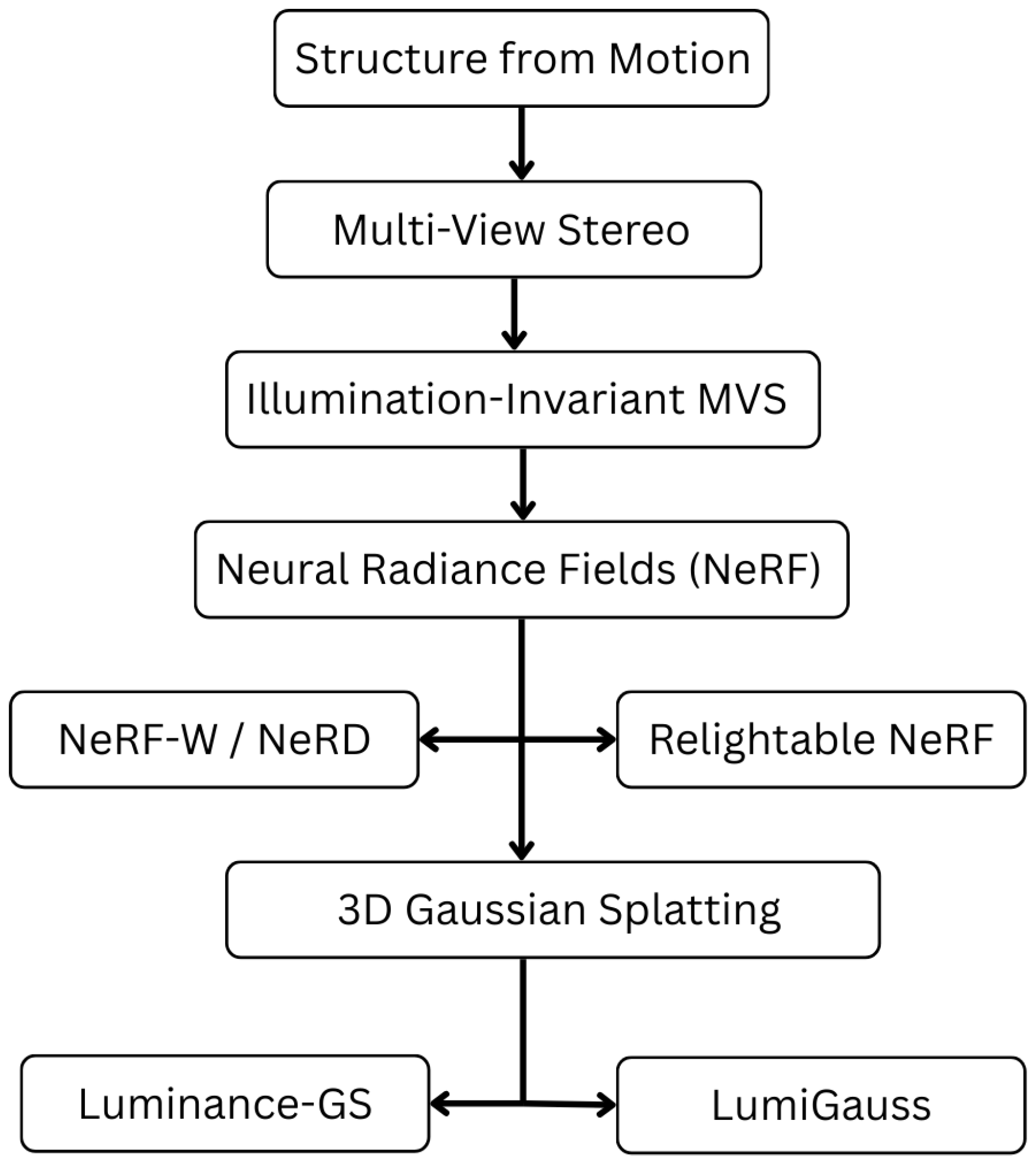 This review also indicates promising directions for future research, including learning representations invariant to light, photometric dataset construction, multimodal sensor fusion, and domain-specific reconstruction toolkits. Ultimately, the ability to produce high-fidelity 3D reconstructions under disparate light conditions is not only a technological objective but also a step toward real-world applicability across forensics, archaeology, robotics, and beyond.