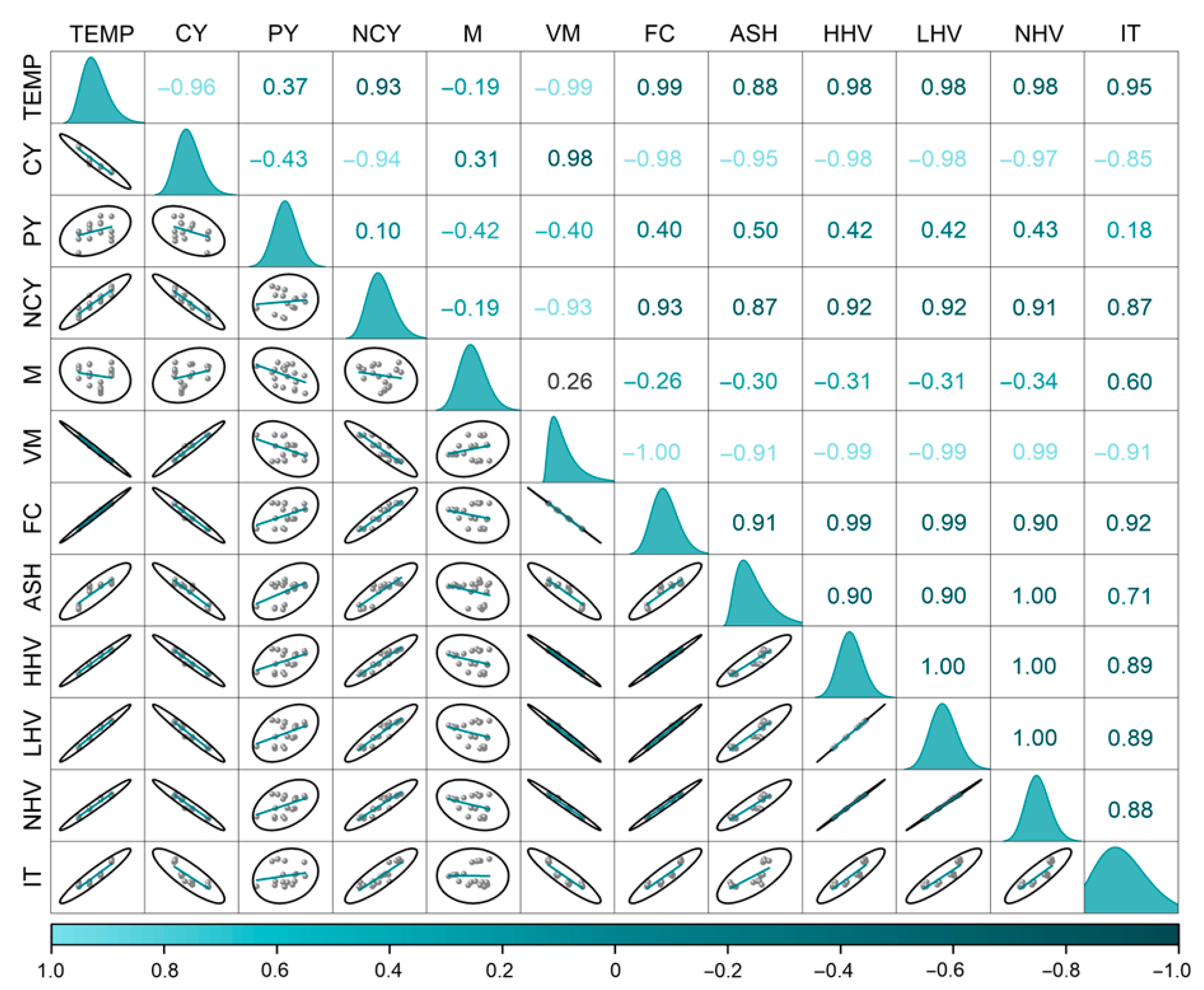 HHV (MJ.kg–1) | 28.03 (±0.14) | 30.72 (±0.08) | 33.51 (±0.14) | 34.77 (±0.12) |