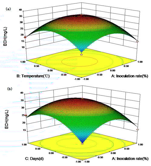 3.5. RSM for Optimizing the Fermentation Conditions of ECH