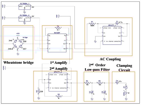 Schematic of the front-end circuit designed for the strain-based pulse wave sensor.