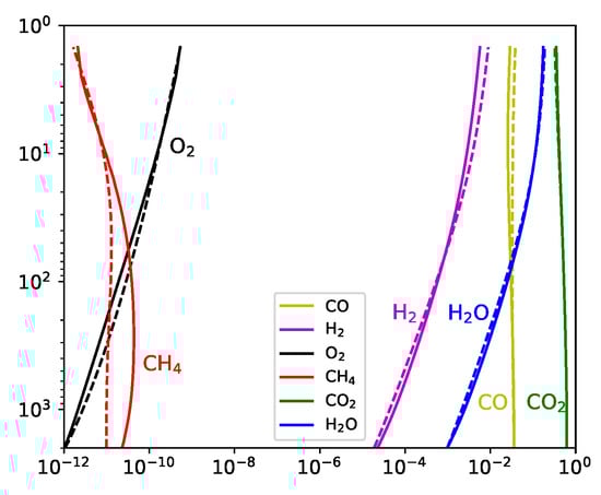 - Tsai, S.M.; Lyons, J.R.; Grosheintz, L.; Rimmer, P.B.; Kitzmann, D.; Heng, K. VULCAN: An Open-source, Validated Chemical Kinetics Python Code for Exoplanetary Atmospheres. ApJS 2017, 228, 20. [Google Scholar] [CrossRef]