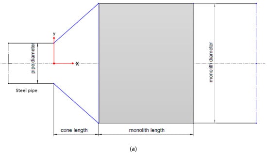 In all cases, the flow was assumed to be incompressible and statistically stationary; hence, the steady-state Reynolds-averaged Navier–Stokes (RANS) equations were used to describe the turbulence. The open sections consist of the domains both before and after the monolith.