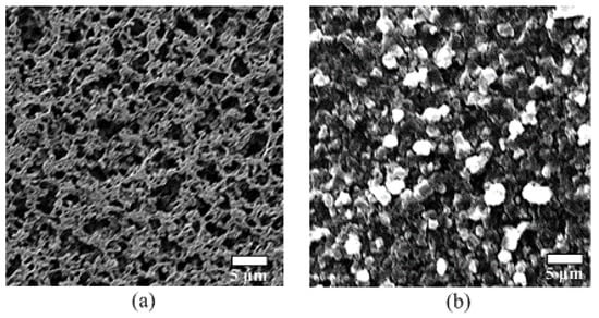 The SEM pictures. (a) Nylon membrane filter. (b) Conductive polymer.