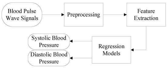 Block diagram of the blood pressure estimation process by machine-learning techniques.