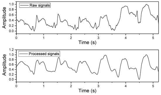 Pulse wave signals before and after Hilbert–Huang transform (HHT) signal preprocessing.